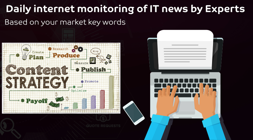 We spend at least one hour a day monitoring IT, Tech & Business media to select the best articles that match your keywords and your positioning